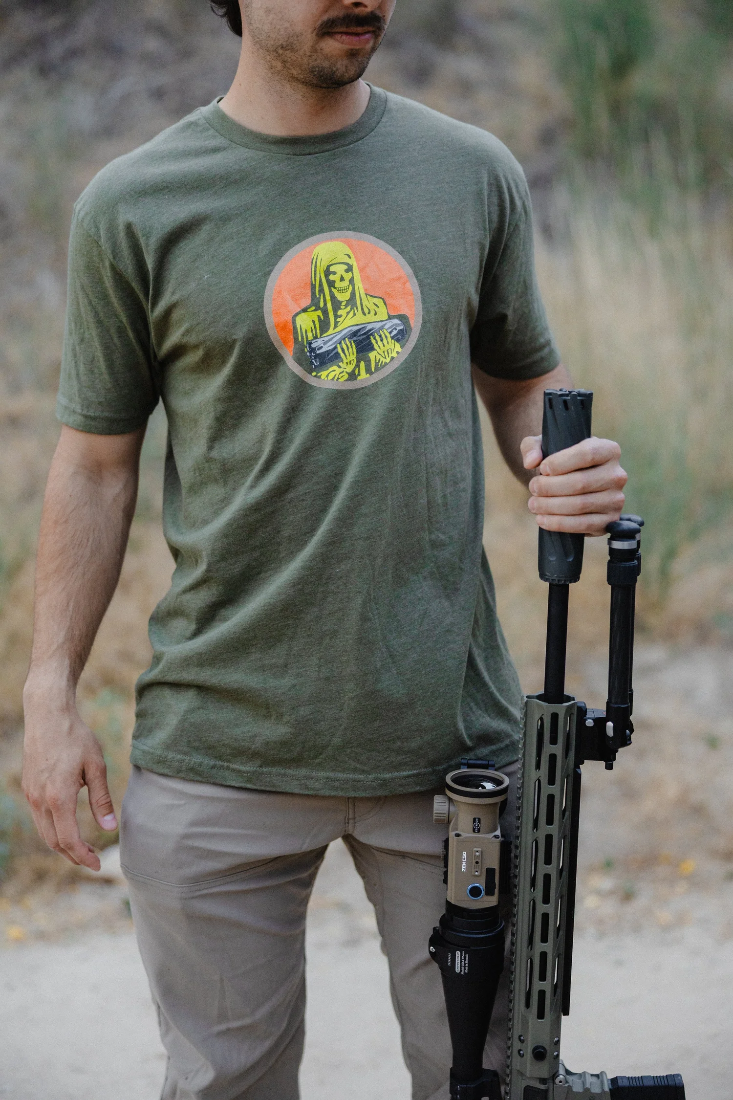Rock the Silent Armament Forge logo with the Grim Reaper holding one of our Vigilantis suppressors. Soft, tri-blend shirts.